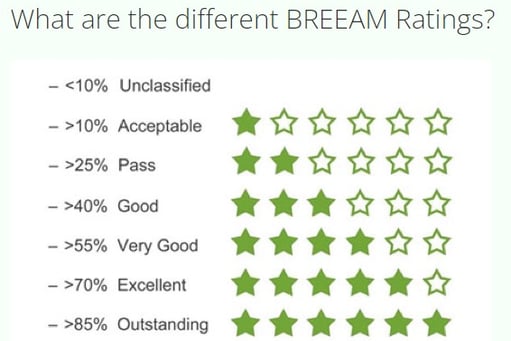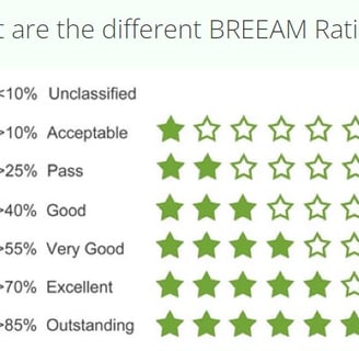 The BREEAM rating is calculated, and depending on the percentage achieved, the below rating is granted.